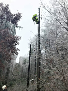Currently as of 4 pm, members impacted are as follows: 3,778 in Ashe County; 1,459 in Alleghany County; 260 in Watauga County; 78 in Wilkes County; and one in Caldwell County. Outages are fluctuating as crews get power restored in certain areas but weather conditions, including ice melting off limbs and falling into power lines, lead to new damage and outages in other locations.