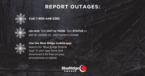 Blue Ridge Energy will share storm updates and restoration information on social media at: