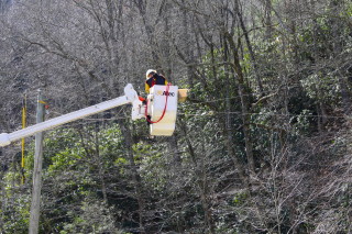 A total of 12,203 members have been impacted since Thursday at 6:30 p.m. Extreme, sustained high winds, coupled with saturated ground after weeks of heavy rain, have brought down numerous trees onto power lines. Many power poles have been broken and 173 different locations on the electric system have been damaged. The single largest outage was Thursday evening when a high voltage transmission line was damaged, affecting over 5,000 members for 4 hours as crews used special equipment to reach the remote mountain ridge top. Line technicians scaled the large transmission pole with special ladders to make repairs and restore power before midnight.