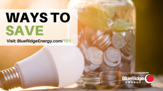 For more ideas, visit Blue Ridge Energy’s website for 101 Easy Ways to Save Energy and Money: www.BlueRidgeEnergy.com/101.